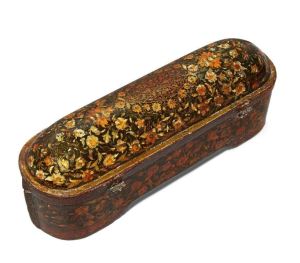 A large lacquered papier mache domed scribe’s case, Turkey or India, 17th c.